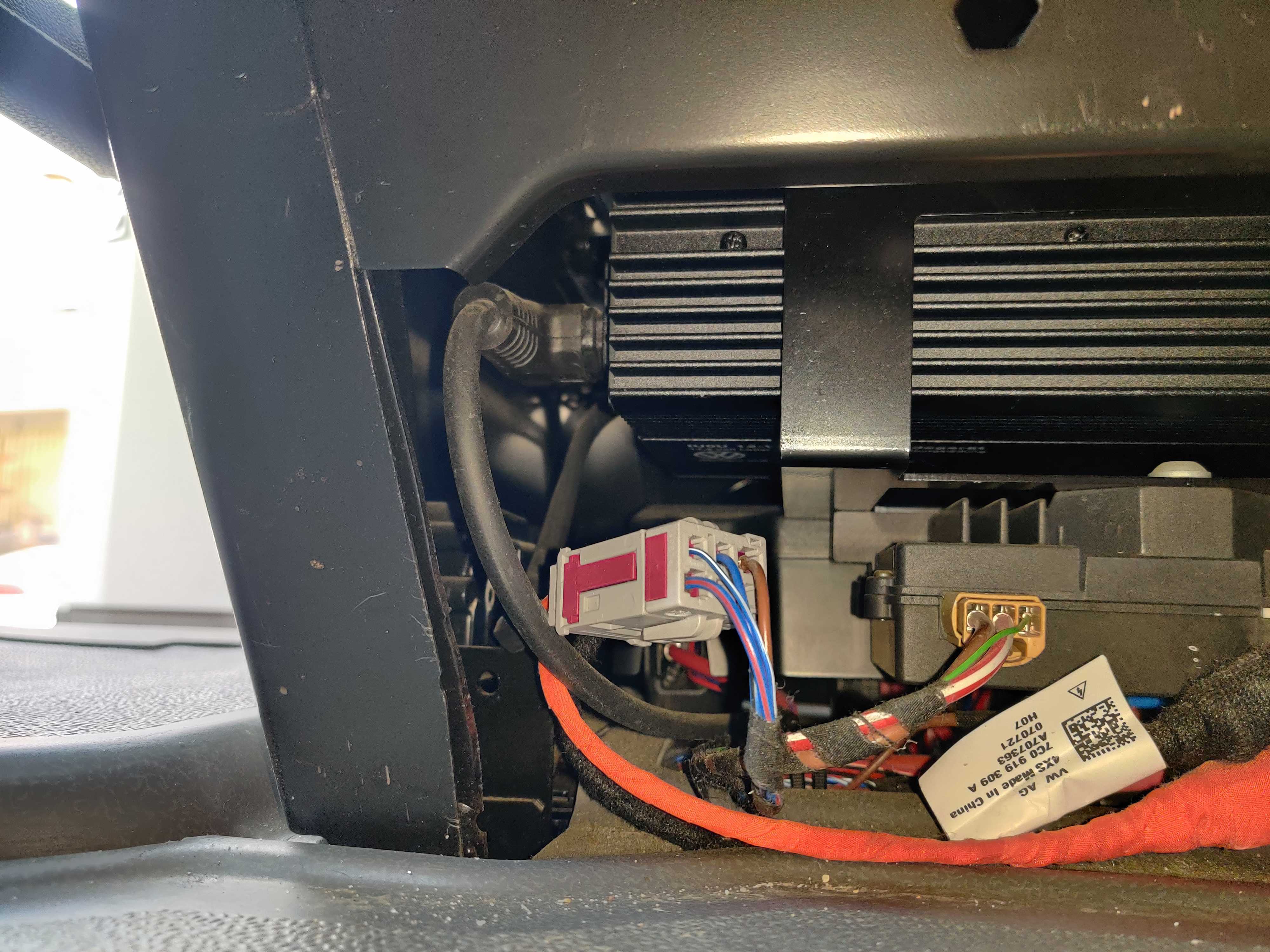 - Confirm that the black plug under the driver's seat is connected (photo below).